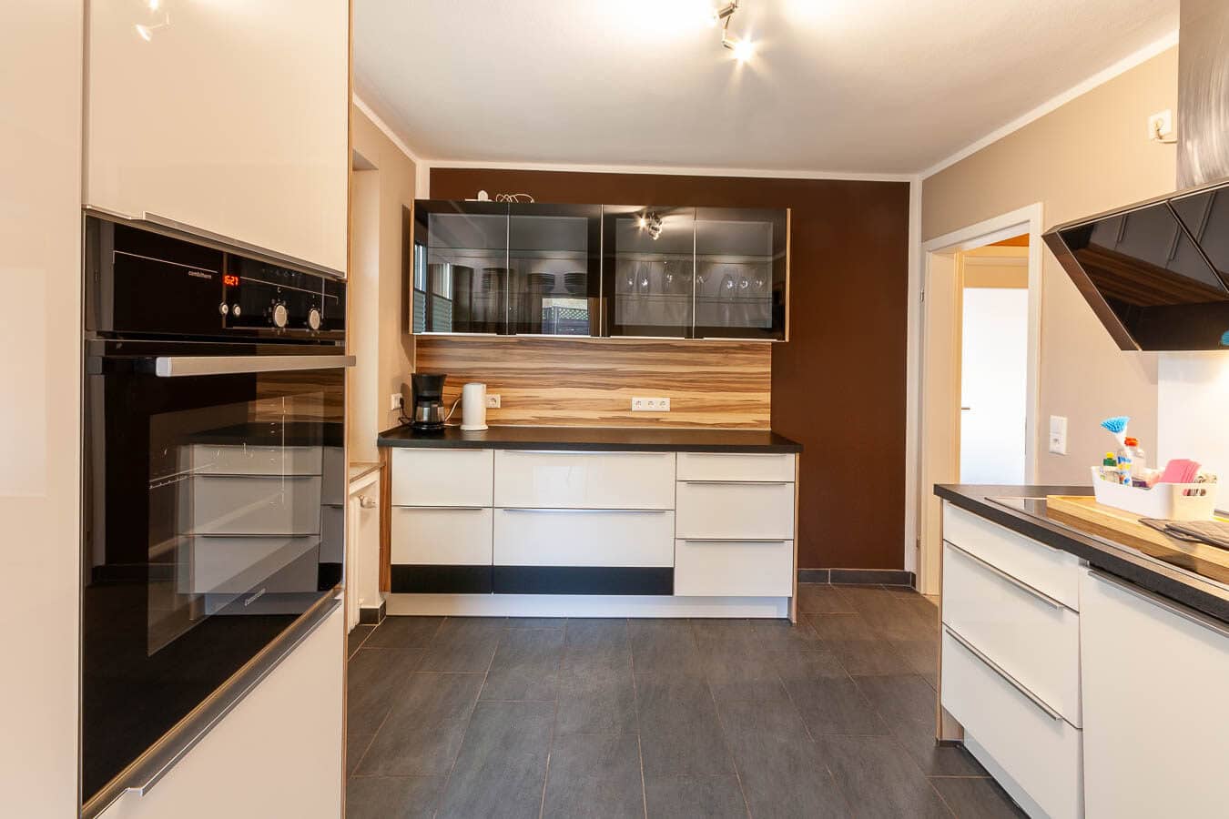 Ein Hauswirtschaftsraum mit Waschmaschine sowie vier PKW-Stellplätze und eine Garage sorgen für praktischen Komfort, auch bei längeren Aufenthalten.