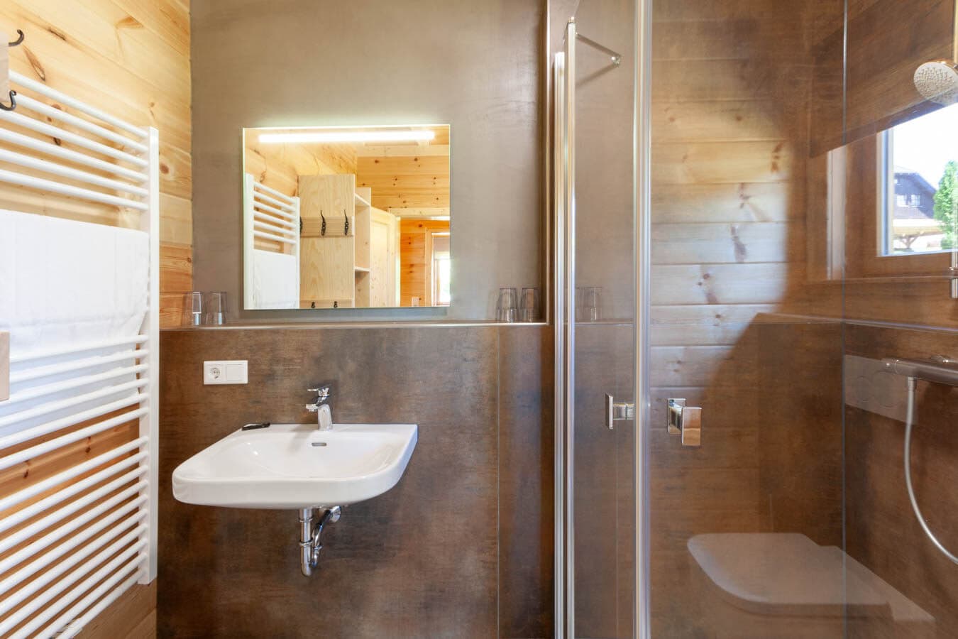 Ein besonderes Highlight ist der Gartenbereich mit einer Sauna sowie einer Schwalldusche, die Erholung pur versprechen. Die Sauna steht den Gästen zur alleinigen Nutzung zur Verfügung und bietet auch an kühleren Tagen eine perfekte Rückzugsmöglichkeit.