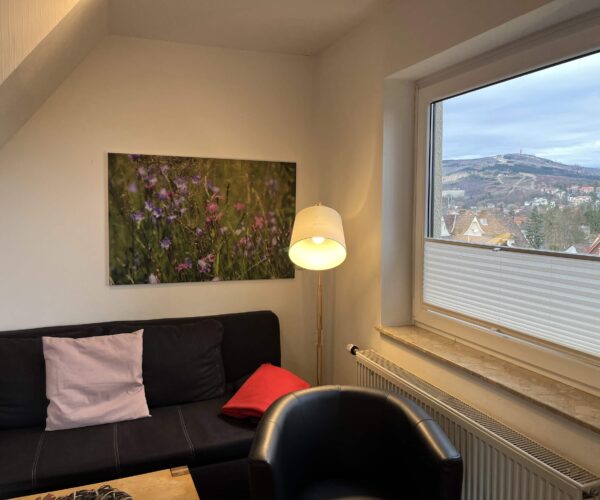 Die liebevoll eingerichtete Ferienwohnung bietet Komfort und eine angenehme Wohlfühlatmosphäre für erholsame Tage im Harz. Im offenen Wohn- und Essbereich befindet sich eine moderne, vollständig ausgestattete Küchenzeile sowie ein einladender Essplatz für gemeinsame Mahlzeiten. Ein gemütliches Schlafsofa und ein bequemer Sessel bieten nach aktiven Tagen ideale Rückzugsmöglichkeiten.