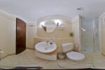 Das Badezimmer ist funktional ausgestattet mit Dusche, WC und Waschbecken. Ein besonderes Extra ist der zur Straße ausgerichtete Balkon, der sich ideal für eine Kaffeepause im Freien oder zum Beobachten des lebendigen Ortsgeschehens eignet.