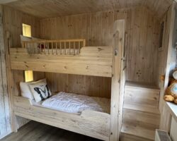 Die Haupteinheit Oerdheks besticht mit einem offenen Wohn- und Essbereich samt voll ausgestatteter Küche – der zentrale Ort für gemeinsame Mahlzeiten und gesellige Abende. Zwei Schlafzimmer sowie ein Kinderzimmer mit Etagenbett bieten ausreichend Schlafmöglichkeiten. Ein modernes Badezimmer sowie ein zusätzliches Gäste-WC sorgen für Komfort im Alltag.
